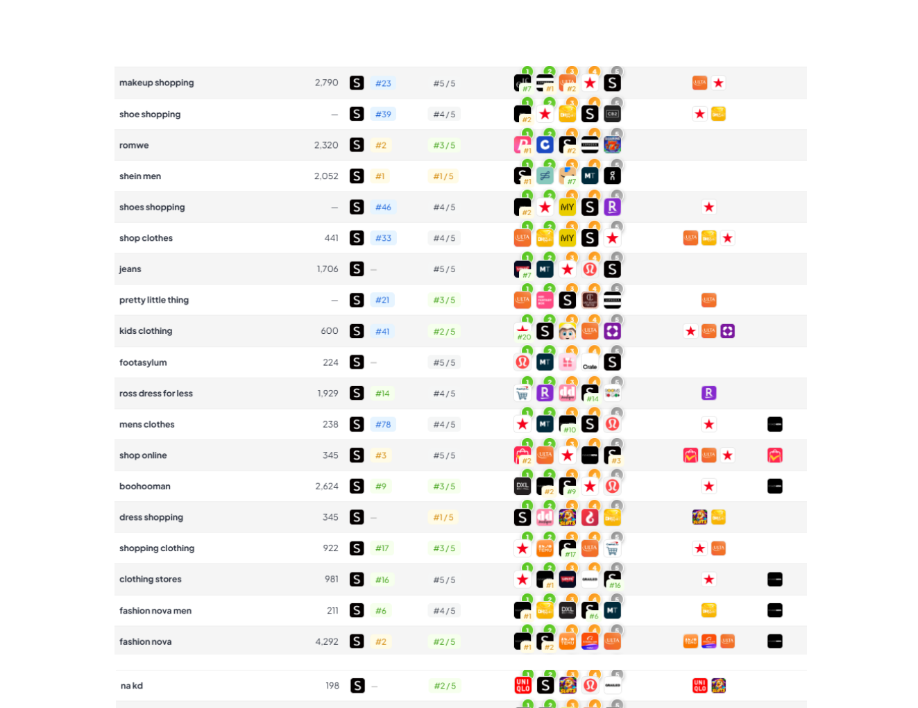 | Keyword | SHEIN rank | Est. daily impressions | Why it matters |