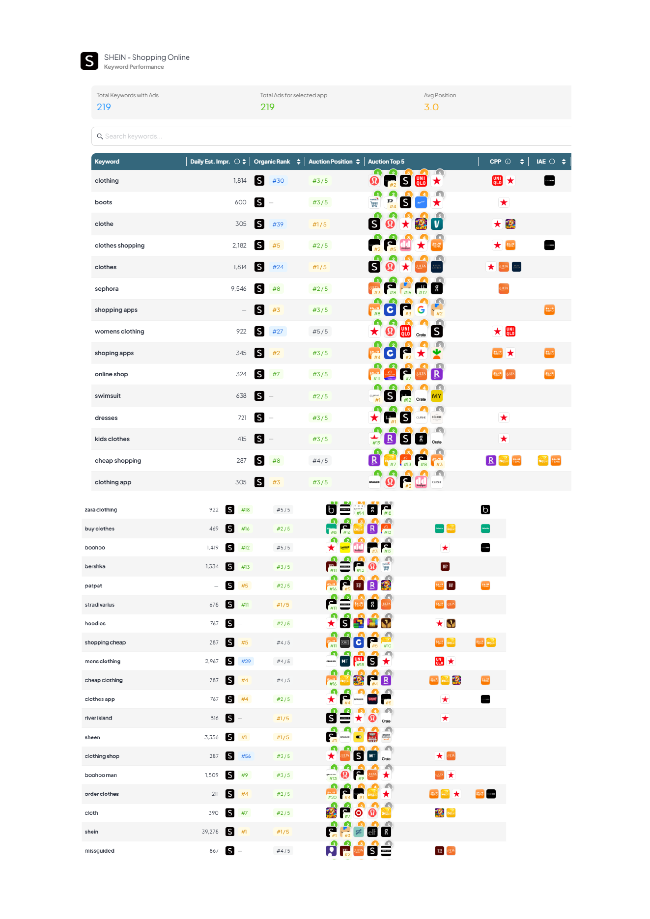 | Keyword | SHEIN rank | Est. daily impressions | Why it matters |