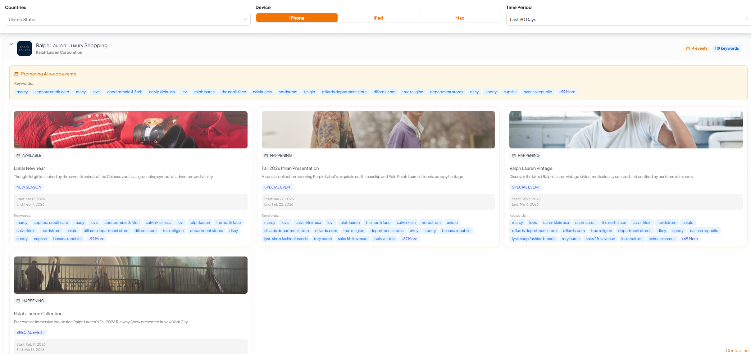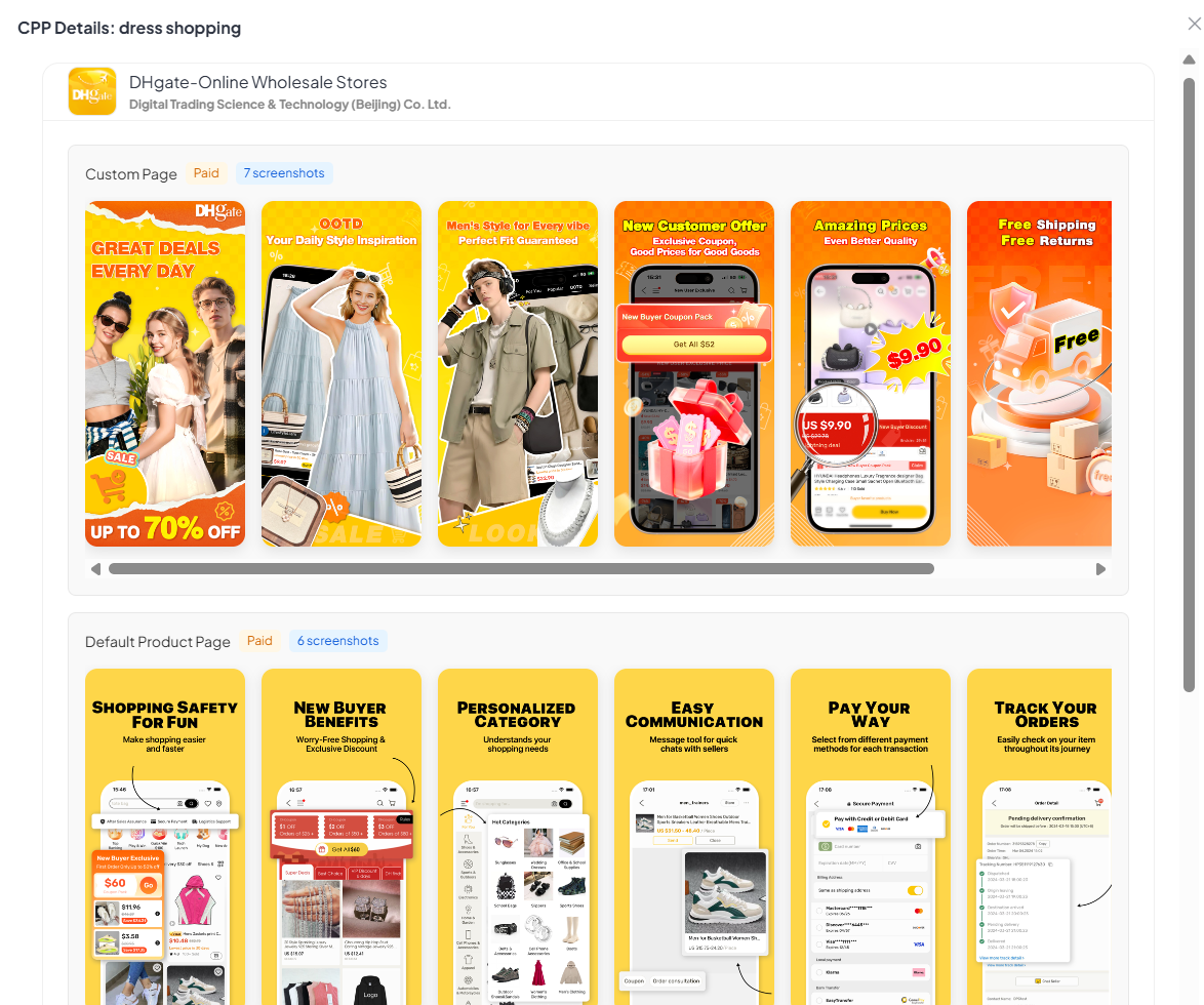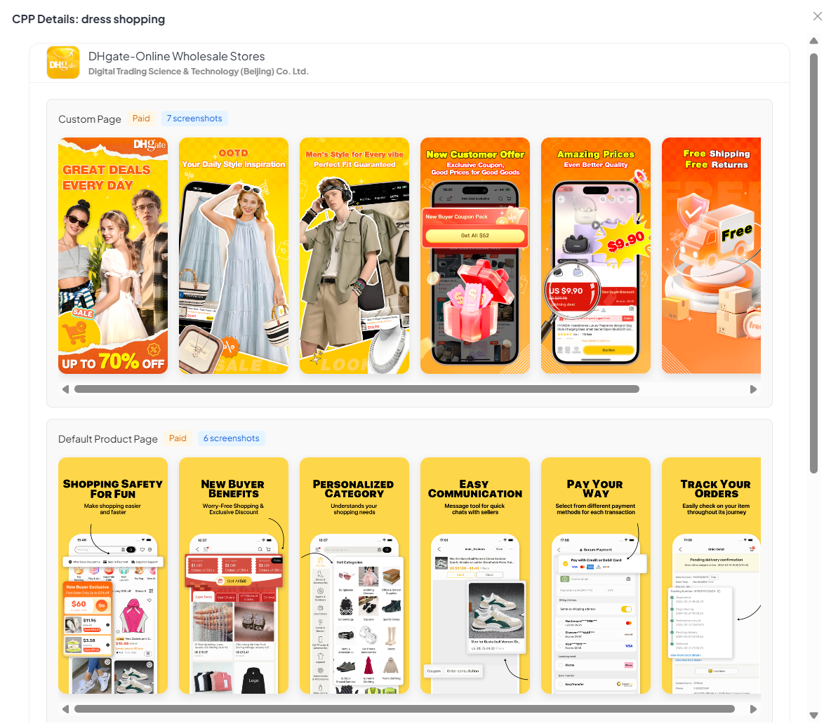 - CPP discovery: find which apps are using organic CPPs, what the variant looks like, and the keyword clusters that trigger it.